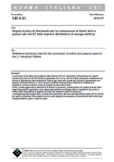 中國儲能網(wǎng)訊:新版意大利低壓并網(wǎng)標準