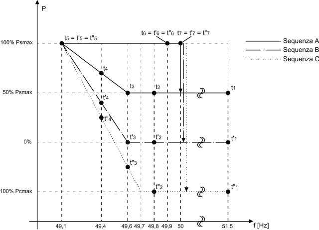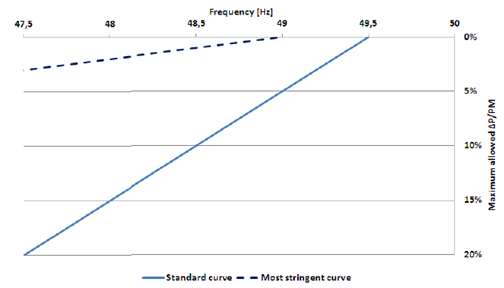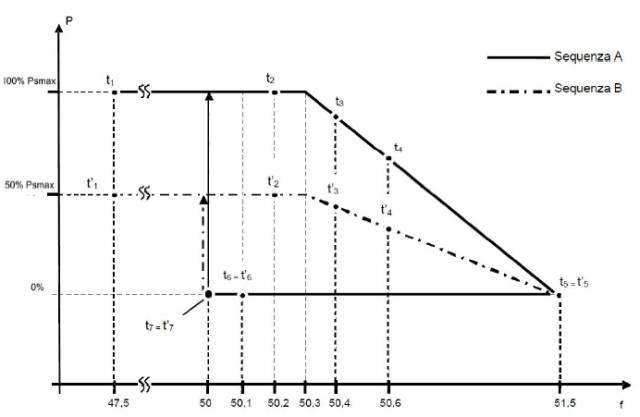 5、B.1.3.2 Active power regulation in coincidence with under-frequency transitory on the transmission grid差異:電網(wǎng)欠頻時滿足Figure 12bis,類似EN 50438:2013的要求。