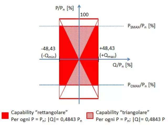 額定發(fā)電功率超過11.08kW的發(fā)電系統(tǒng)所使用的逆變器,其無功功率應可在-48.43%Pn 和+48.43%Pn之間調(diào)節(jié)。