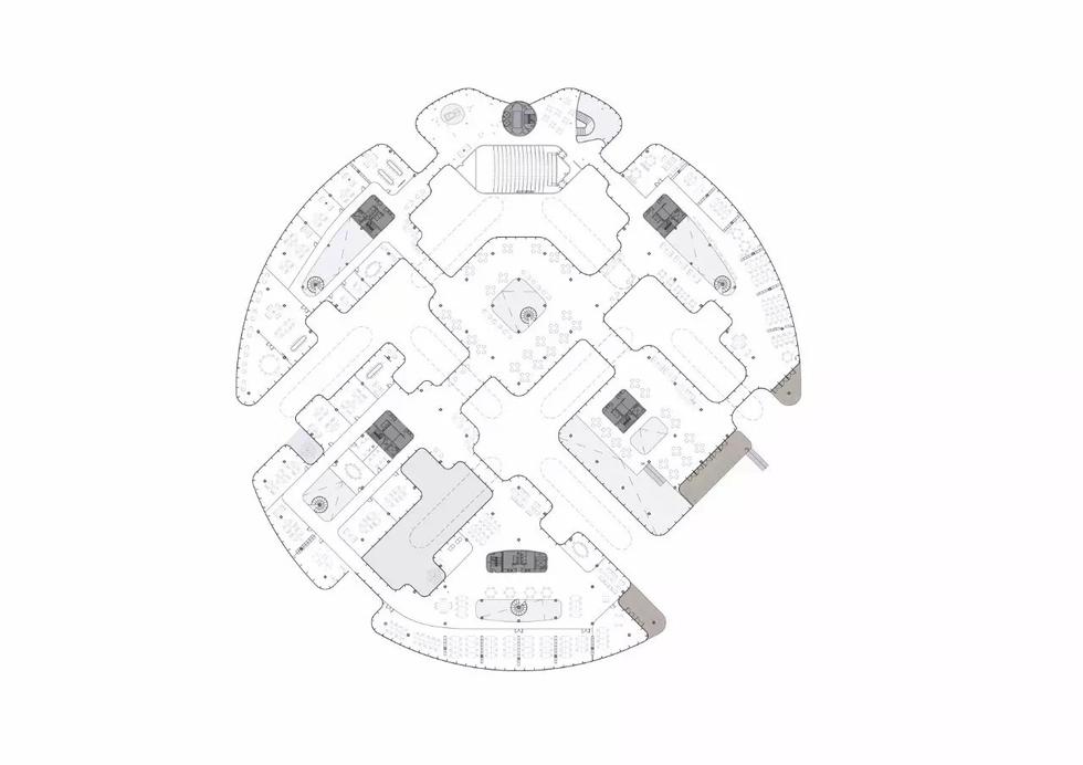 整個辦公區(qū)分成幾個組團(tuán),其中設(shè)有多個天井和中庭,通過步道將室內(nèi)外貫穿,有機(jī)結(jié)合、形成一個整體。自然光和馬雷島獨特的環(huán)境、園區(qū)內(nèi)設(shè)計的人工景觀,三者融合為一,被帶入員工的室內(nèi)工作環(huán)境中。