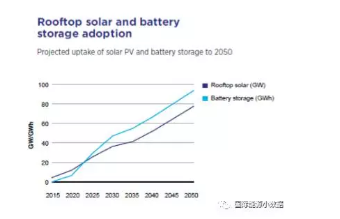 很顯然,如果風(fēng)電、光伏發(fā)電接近100%,那么必須應(yīng)用儲能技術(shù)。問題是使用什么樣的儲能技術(shù),誰來買單?研究表明,在澳大利亞,最重要的儲能將來自“電表后”(需求側(cè))的儲能,即1000萬居民與商業(yè)用電戶的屋頂光伏與電池儲能結(jié)合。根據(jù)這份研究下繪制的路線圖,澳大利亞屋頂光伏裝機到2026年將達20GW,2050年可望達到80GW;相應(yīng)的儲能規(guī)模2026年為32GWh、2050年87GWh,而這些儲能將大部分來自“電表后”,是用電戶的市場行為(降低電費)。