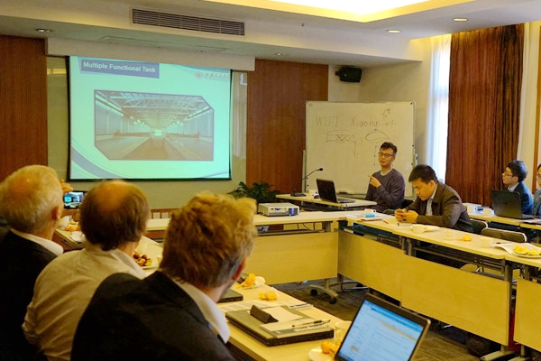 Jensen等6位來自丹麥技術大學的專家介紹了DTU的海上風機研究進展,包括多種類型風機的風場布局優(yōu)化以及風機智能葉片的研究。王同光帶領的團隊介紹了玻爾茲曼方法在航空聲學領域的應用以及考慮大氣邊界層效應的風機尾跡的數(shù)值模擬方法。來自金風科技的風機研發(fā)專家介紹了他們在風機設計及工業(yè)生產(chǎn)中的進展,并提出了實際工程中遇到的難點,希望通過與上海交大等研究機構加強合作,共同解決風機研發(fā)中的工程應用問題。