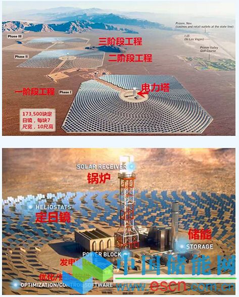 由美國(guó)BrightSource能源公司、NRG能源公司和Google共同參與投資的世界上最大的太陽(yáng)熱電系統(tǒng)“艾文帕太陽(yáng)能發(fā)電系統(tǒng)”(IvanpahSolarElectricGeneratingSystem,ISEGS)位于美國(guó)拉斯維加斯西南部40英里的莫哈韋沙漠,當(dāng)?shù)厝耆照粘浞?,距離輸電線路距離較近。ISEGS由3座太陽(yáng)熱發(fā)電廠組成,它的成型和運(yùn)作被視為提供了能和化石燃料競(jìng)爭(zhēng)的新能源工程樣本,是在下一代科技、創(chuàng)新、政府、企業(yè)合作之下共同形成的,可以應(yīng)對(duì)氣候變化的可持續(xù)解決方案。