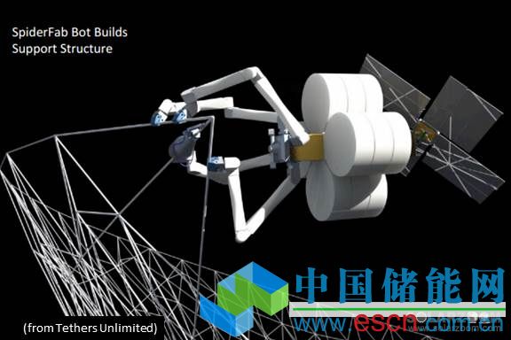 但是要如何自動安裝?這就有賴一個自動組裝機器人“蜘蛛工廠”(SpiderFab),隨著零件一起發(fā)射上太空,之后,它會有如蜘蛛結網(wǎng)一樣,依照內建的程式,先組成網(wǎng)狀的碳纖維骨架,之后再鋪上薄膜太陽能電池,或是薄膜反射鏡,這樣就大功告成了。