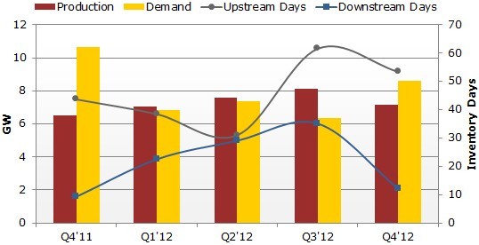 Q4’11-Q4’12產(chǎn)量、需求、庫存天數(shù)預(yù)測
