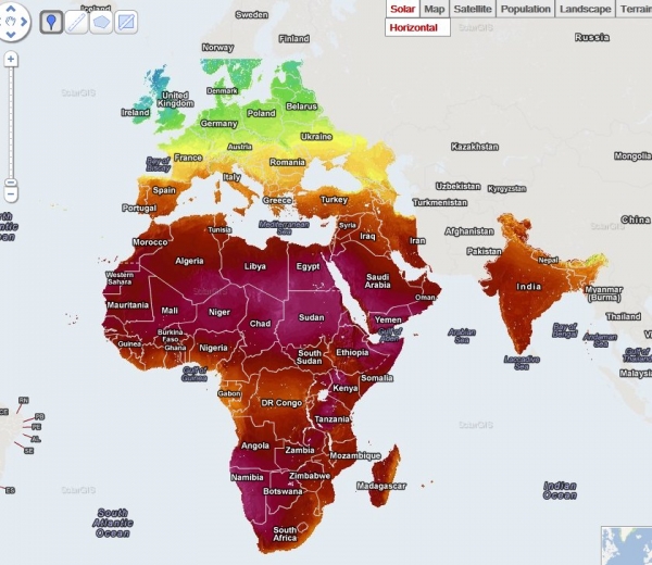 中國儲能網(wǎng)訊:近日GeoModelSolar發(fā)布了南非、萊索托以及斯威士蘭的新太陽能分布圖,圖中顯示了非洲大陸的太陽能直接輻射狀況。GeoModelSolar管理總監(jiān)MarcelSuri表示:“這些太陽能分布圖的獨特性反應(yīng)在其250米的極高空間分辨率。至于時間分辨率,基礎(chǔ)太陽能數(shù)據(jù)保存有18年的歷史數(shù)據(jù)(1994至今),時間步長最高可達到15分鐘。
