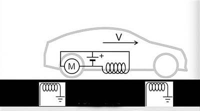 充電系統(tǒng)的工作原理是將一系列接通電流的線圈埋入高速路面下,在汽車底部裝上感應(yīng)線圈,當(dāng)汽車通過該高速路時(shí)就會(huì)共振,產(chǎn)生磁場(chǎng)將電力持續(xù)不斷地傳輸給電池。