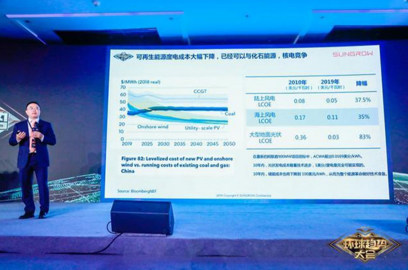 在美國得克薩斯州,陽光電源實施了當(dāng)?shù)刈畲髢δ茼椖浚?0MW/42MWh)。這樣一個并不發(fā)電、單純儲能的項目發(fā)揮的作用是有效提升電網(wǎng)系統(tǒng)穩(wěn)定性。趙為表示,儲能項目就像蓄水池,接入電網(wǎng)后能夠起到非常好的支撐作用。他透露,陽光電源2019年全球儲能出貨量將超過300MWh,未來光伏電站配置一部分儲能是一大方向。