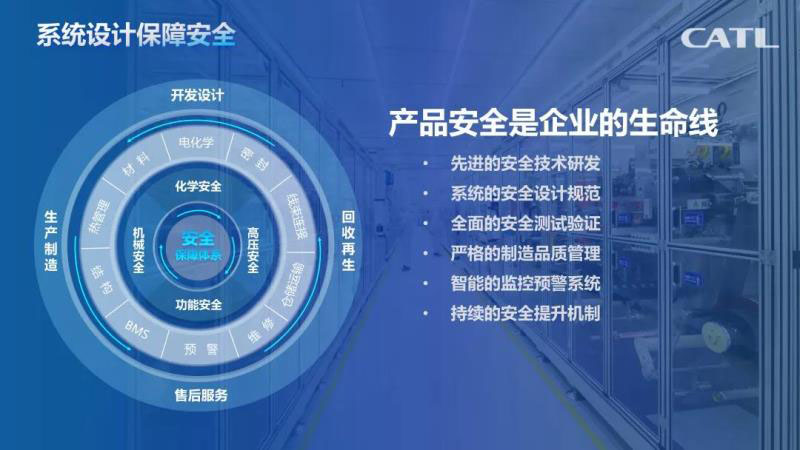 最后是大家都非常關(guān)心的安全問題,寧德時(shí)代始終將安全作為企業(yè)的生命線,將安全作為產(chǎn)品開發(fā)的首要考慮。從產(chǎn)品設(shè)計(jì)、電芯制造、系統(tǒng)集成、BMS管理,售后服務(wù),報(bào)廢回收等建立了完整的安全保障體系。隨著能量密度提升,一定要做好電池本體安全,同時(shí)做好系統(tǒng)安全。