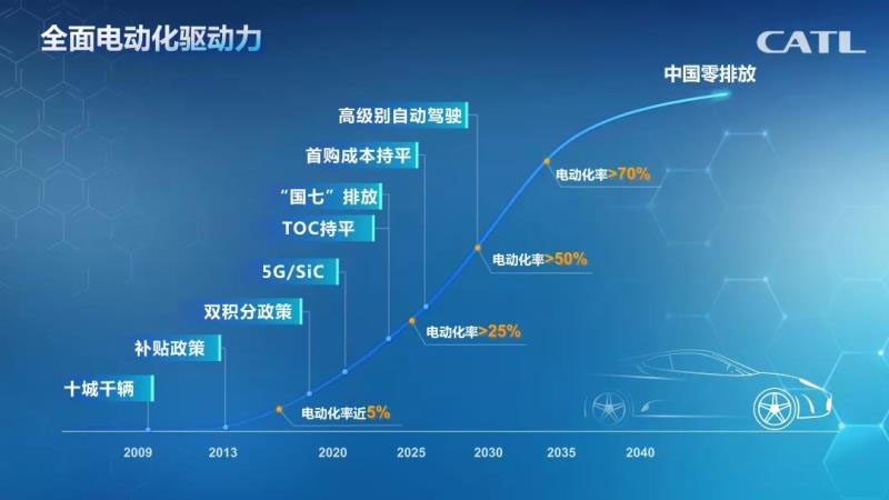 我們有這么幾個(gè)關(guān)鍵時(shí)間點(diǎn)的判斷:2025年之前,純電動(dòng)汽車全生命周期持有成本可低于燃油車,進(jìn)入快速發(fā)展階段;同時(shí),隨著燃油車排放法規(guī)的嚴(yán)格趨勢,2030年之前,首次購置成本開始低于燃油車,拐點(diǎn)到來。在2035年,我們的判斷電動(dòng)化率會大過70%。因?yàn)榈?025年,基本電動(dòng)車比燃油車更具有經(jīng)濟(jì)性,市場驅(qū)動(dòng)會非常好。2040年之前,除一些特殊應(yīng)用領(lǐng)域,基本全面實(shí)現(xiàn)電動(dòng)化。