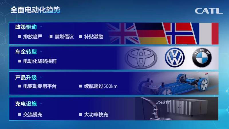 一是政府層面,各國的排放法規(guī)不斷加嚴(yán),傳統(tǒng)燃油車達(dá)標(biāo)難度越來越大。歐洲等不少國家提出了禁售燃油車時(shí)間表,并制定了新能源汽車補(bǔ)貼等激勵(lì)政策。
