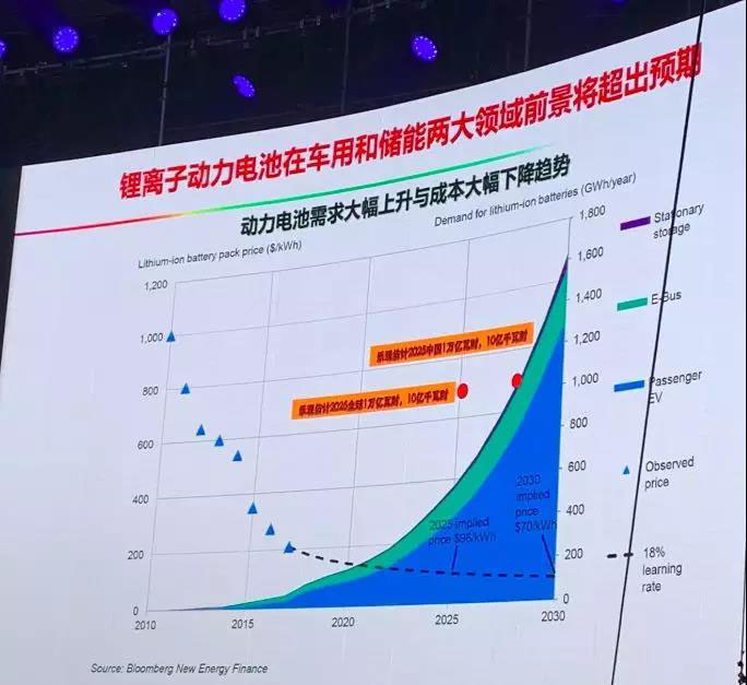 “新能源汽車發(fā)展十年來,恰逢鋰離子電池能量密度從100Wh/kg提升到300Wh/kg,價(jià)格從5塊降低到現(xiàn)在最低0.8元,實(shí)現(xiàn)了蓄電池領(lǐng)域百年來革命性突破?!?