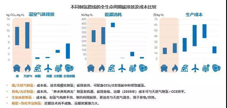 對比不同路線的全生命周期碳排放及成本,天然氣制氫成本比煤制氫要高,煤制氫成本比較低,適合規(guī)?;纳a,可配備ccs實現(xiàn)碳中和,由灰氫變成藍氫。