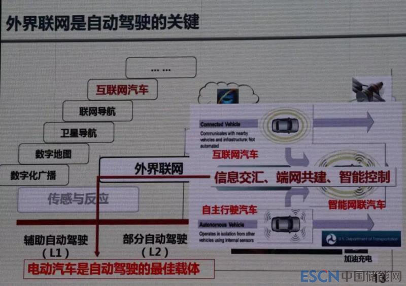 萬(wàn)鋼指出,L2(部分自動(dòng)駕駛)階段,將數(shù)字廣播、數(shù)字地圖、衛(wèi)星導(dǎo)航和聯(lián)網(wǎng)導(dǎo)航等諸多外界信息融合的互聯(lián)網(wǎng)汽車(chē)發(fā)展迅速。外部信息和汽車(chē)自動(dòng)駕駛的內(nèi)部信息集合在一起,是智能網(wǎng)聯(lián)汽車(chē)的一個(gè)特征,而外聯(lián)網(wǎng)將是自動(dòng)駕駛的關(guān)鍵,信息交匯、端網(wǎng)共建、智能控制成為它(外聯(lián)網(wǎng)技術(shù))的焦點(diǎn)。電動(dòng)汽車(chē)所有的反應(yīng)都由數(shù)字驅(qū)動(dòng),整體數(shù)字化程度最高。從外部網(wǎng)聯(lián)角度來(lái)看,電動(dòng)汽車(chē)仍然是自動(dòng)駕駛的最佳載體。