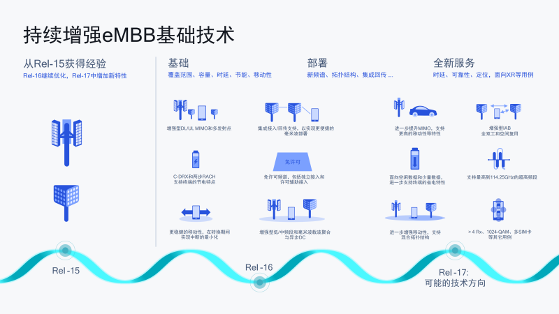Rel-15、Rel-16、Rel-17分別對應5G商用標準的三個版本??傮w來說,5G標準在演進的過程中不斷引入全新的5G技術,而不是在第一個5G標準版本中就已涵蓋所有場景。與此同時,除了在標準上不斷地引入新的功能以外,5G的應用也在不停地往不同垂直領域擴展,包括智能手機、電腦、固定無線接入、工業(yè)物聯(lián)網、面向企業(yè)和汽車的網絡以及企業(yè)專網等。