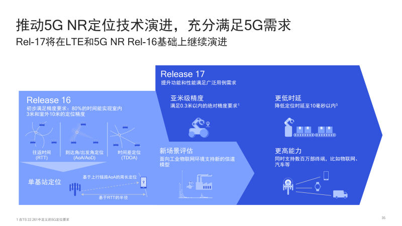在徐晧的介紹中,讓《每日經濟新聞》記者印象最深刻的是對5G定位技術的描述。其介紹,在垂直領域的應用中,另外一個很重要的5G Rel-16版本技術就是5G NR定位。5G可支持室內定位,這是GPS不具備的能力,再則5G定位是基于蜂窩通信而非衛(wèi)星通信實現(xiàn)的,5G定位可與其它定位技術互為補充。以及5G定位支持更高定位精度及更低時延,能夠滿足多樣化的服務需求。