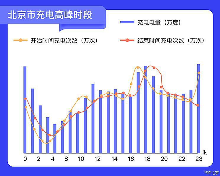 從使用趨勢來看,充電電量和充電次數(shù)均呈現(xiàn)平穩(wěn)上升趨勢,且受季節(jié)性因素影響較大。由于新能源汽車冬季電池耗電量高、掉電量快,進(jìn)入11月份之后,用電量和用電次數(shù)環(huán)比增幅均達(dá)到10%以上,12月達(dá)到用電峰值。每日的充電高峰時(shí)段為早上8:00-9:00、下午15:00-16:00和晚上23:00-0:00點(diǎn)。