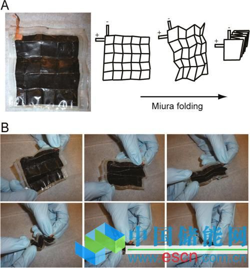 中國儲能網(wǎng)訊:據(jù)世界科技新聞資訊網(wǎng)站Phys.org報道,美國科學(xué)家最近研究發(fā)現(xiàn),通過將紙基鋰離子電池進(jìn)行Miura-ori式折疊,它們的單位面積能量密度和容量將增加14倍之多。