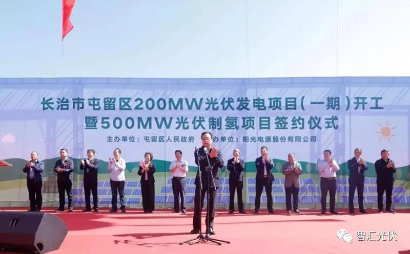 2019年9月25日,山西省屯留區(qū)在吾元鎮(zhèn)舉行200MW光伏發(fā)電項(xiàng)目(一期)開工暨二期500MW光伏制氫項(xiàng)目簽約儀式。
