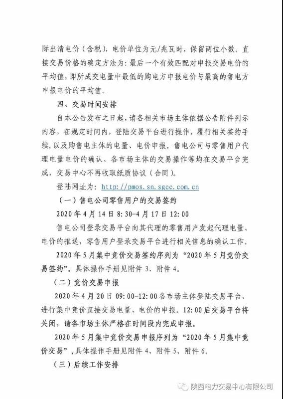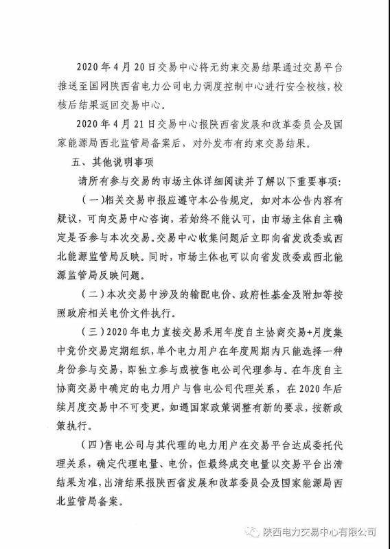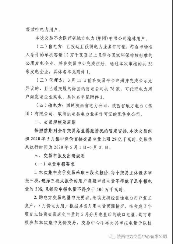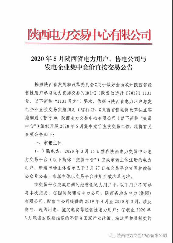 2020年5月陜西省電力用戶、售電公司與發(fā)電企業(yè)集中競價直接交易公告