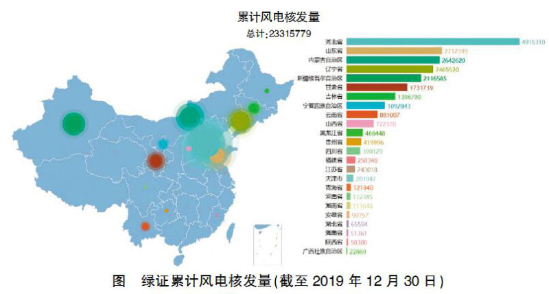 至此,在我國(guó)可再生能源電力配額考核方面,形成了可再生能源電力消納責(zé)任權(quán)重(簡(jiǎn)稱(chēng)“消納責(zé)任權(quán)重”)和綠色電力證書(shū)(簡(jiǎn)稱(chēng)“綠證”)相結(jié)合的實(shí)施辦法體系。從綠證實(shí)際交易情況來(lái)看,由于自愿認(rèn)購(gòu)對(duì)認(rèn)購(gòu)方刺激作用不強(qiáng),綠證認(rèn)購(gòu)情況慘淡。截至2019年12月30日,累計(jì)風(fēng)電核發(fā)量高達(dá)23315779兆瓦時(shí),累計(jì)光伏交易量?jī)H為25818兆瓦時(shí);累計(jì)風(fēng)電核發(fā)量高達(dá)3839236兆瓦時(shí),累計(jì)光伏交易量?jī)H為160兆瓦時(shí)(見(jiàn)圖)。