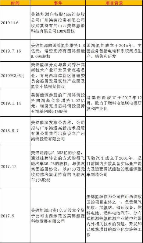 資料顯示,美錦能源主要從事焦炭及其制品、煤炭、天然氣及煤層氣等生產經營。公司2017年開始籌劃布局氫能及燃料電池行業(yè),具體進展見下表: