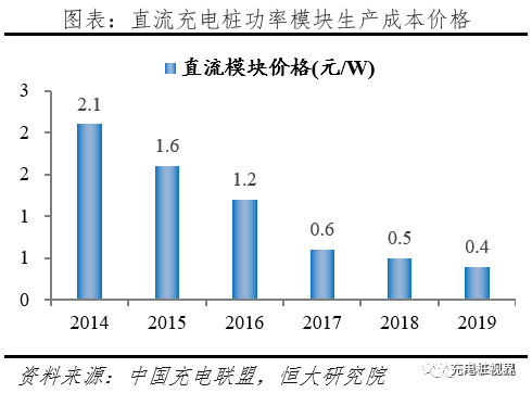 據(jù)中國充電聯(lián)盟披露,截至2019年12月,我國公共充電樁交流樁和直流樁分別占比58%、42%;2019年新增公共充電樁交流樁、直流樁分別占比58%、42%。以公共直流樁為例,其核心零部件直流模塊(切換交流成直流)成本占比較高,近80%;近幾年成下降趨勢,降幅逐漸趨緩,截止到2019年價(jià)格在0.4元/W左右;根據(jù)下列合理假設(shè),測算其實(shí)現(xiàn)盈虧平衡的充電利用率應(yīng)在8-10%之間,與主流充電樁運(yùn)營商反饋基本一致。