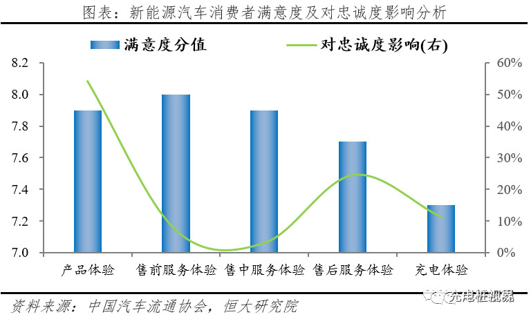雖然我國車樁比不斷下降,充電配套持續(xù)改善,但是行業(yè)仍然存在部分問題亟待解決,新能源汽車用戶對充電的滿意度仍然較低,嚴(yán)重影響了新能源汽車消費(fèi)體驗(yàn)。2019年8月,中國汽車流通協(xié)會(huì)發(fā)布的《2019新能源汽車消費(fèi)市場研究報(bào)告》調(diào)查顯示:充電體驗(yàn)對品牌忠誠度影響11.2%,遠(yuǎn)高于售前和售中服務(wù)體驗(yàn);而當(dāng)前新能源車用戶對充電體驗(yàn)滿意度最低,只有7.3分,說明充電體驗(yàn)已成為他們的核心痛點(diǎn)。