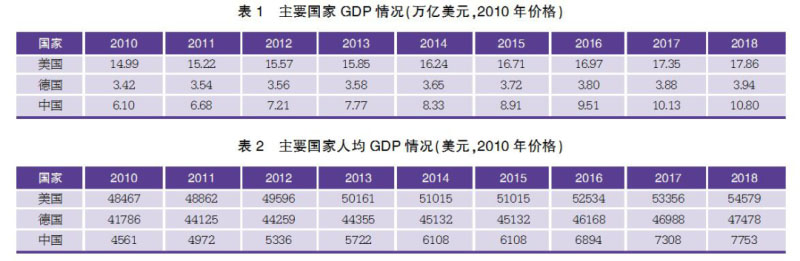 我國GDP總量較大,但是人均GDP遠(yuǎn)遠(yuǎn)落后發(fā)達(dá)國家。2010-2018,我國GDP逐年上漲,從6.1萬億美元增至10.8萬億美元,已經(jīng)位居世界第二,正在與美國的差距不斷縮小。但是從人均GDP來看,我國與發(fā)達(dá)國家差距仍然較大。2018年,我國人均GDP僅為7753美元,僅為美國的14%、德國的16%。具體見表1與表2。