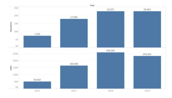 自2015年以來,Sun Wiz公司一直在跟蹤澳大利亞儲能市場的電池安裝量,Sun Wiz董事總經(jīng)理兼報告作者Warwick Johnston表示:“雖然相對來說,住宅側(cè)的電池安裝量有所下降,但非住宅側(cè)的電池容量卻有大幅增加?!?
