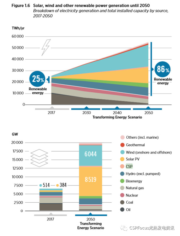 IRENA新能源發(fā)電裝機總量預測(2017-2050)