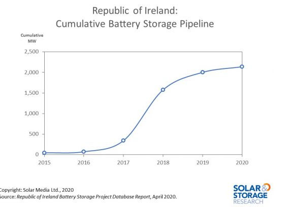 Solar Media公司市場(chǎng)研究團(tuán)隊(duì)在過(guò)去的幾年中一直在追蹤和關(guān)注愛(ài)爾蘭儲(chǔ)能容量的增長(zhǎng)。在此期間,隨著與電網(wǎng)相連的可再生能源發(fā)電量的增加,其儲(chǔ)能部署量也隨之增長(zhǎng)。