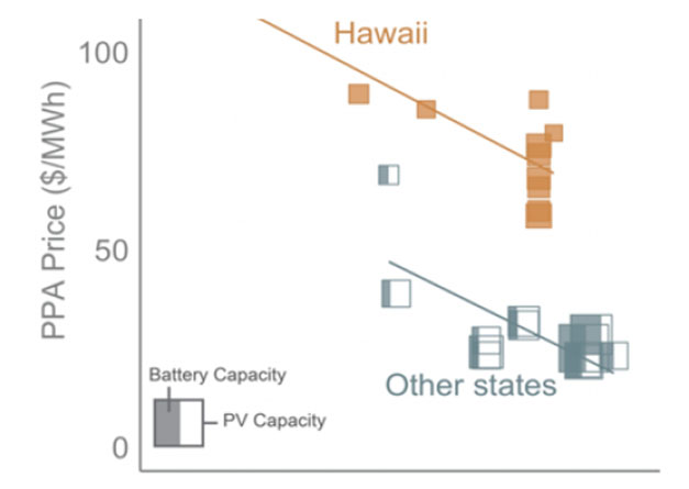 研究發(fā)現(xiàn)美國混合部署能源項目的購電協(xié)議(PPA)價格近幾年迅速下降