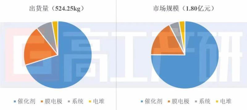 2019年中國氫燃料電池催化劑出貨量和市場規(guī)模構(gòu)成