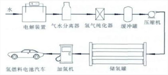 目前加氫站的技術(shù)路線可分為三類:電解水制氫、天然氣重整制氫和站外供氫技術(shù)。其中電解水制氫、天然氣重整制氫為站內(nèi)制氫技術(shù)。