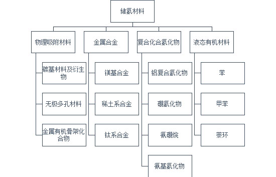 儲氫材料主要可分為物理吸附類材料、金屬合金氫化物材料、絡(luò)合化學(xué)氫化合物材料、液態(tài)有機(jī)儲氫材料等。碳質(zhì)材料等物理吸附材料只能在較低溫度下有足夠的儲氫密度,常溫常壓下其吸氫量遠(yuǎn)遠(yuǎn)低于商用儲氫指標(biāo),并且制備碳納米材料技術(shù)尚不成熟;絡(luò)合化學(xué)氫化物儲氫密度較高,但材料的加氫/脫氫的可逆性、加氫/脫氫過程的副反應(yīng)等都是亟待解決的重要問題。所以目前在眾多儲氫材料中最有望突出重圍的是金屬合金氫化物材料和液態(tài)有機(jī)儲氫材料。
