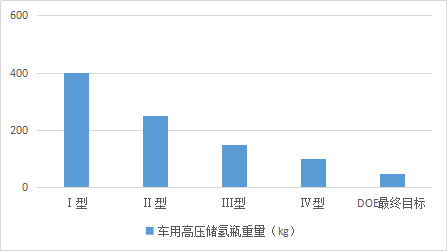 圖3不同車用高壓儲氫罐類型的重量(按照儲氫5kg對比)
