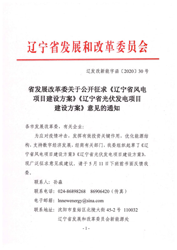 今日,遼寧省發(fā)改委官網(wǎng)發(fā)布了關(guān)于公開征求《遼寧省風(fēng)電項目建設(shè)方案》意見的通知。通知強調(diào):