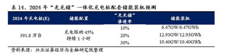 預(yù)測2024年空間:按保守、中性、樂觀三種情景,假設(shè)三種情景下“光充儲”充電樁的滲透率分別為10%、20%、30%,經(jīng)測算在中性情景下儲能裝機(jī)可達(dá)12.93GW/12.93GWh。