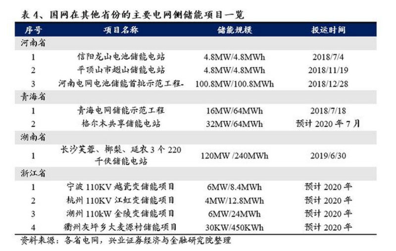 除江蘇省外,國網(wǎng)在河南、青海、湖南、浙江等地也進(jìn)行了電網(wǎng)側(cè)儲能項(xiàng)目建設(shè)。其中,由河南國家電網(wǎng)組織、平高集團(tuán)建設(shè)投資的河南電網(wǎng)100MW電池儲能首批示范工程--洛陽黃龍站首套集裝箱電池儲能單元于2018年6月16日一次并網(wǎng)成功,這不僅是國內(nèi)首個投入運(yùn)行的電網(wǎng)側(cè)分布式電池儲能示范工程,還標(biāo)志著分布式電池儲能在電網(wǎng)側(cè)應(yīng)用邁出關(guān)鍵一步,電網(wǎng)側(cè)儲能關(guān)鍵技術(shù)研究取得重大進(jìn)展。青海國家電網(wǎng)創(chuàng)造性地探索電網(wǎng)側(cè)共享儲能商業(yè)化運(yùn)營模式,國內(nèi)首個市場化運(yùn)營電網(wǎng)側(cè)儲能電站—青海美滿共享儲能電站計(jì)劃于2020年7月正式投運(yùn)。
