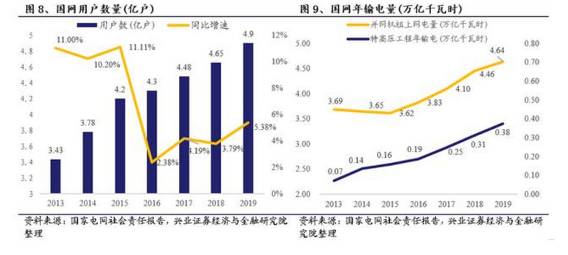 國家電網(wǎng)電力系統(tǒng)基礎(chǔ)設(shè)施建設(shè)力量雄厚,國網(wǎng)車聯(lián)網(wǎng)平臺目前累計(jì)接入充電樁43萬個,年增長率始終保持在50%以上,變電設(shè)備容量自2013年以來實(shí)現(xiàn)了7.28%的年平均增長率,目前總?cè)萘窟_(dá)49.4億千瓦,電力基礎(chǔ)設(shè)施規(guī)模未來將繼續(xù)擴(kuò)大。國網(wǎng)用戶數(shù)量達(dá)4.9億戶,年輸電量高達(dá)4.64萬億千瓦時,占據(jù)國內(nèi)售電量的絕大部分。國家電網(wǎng)實(shí)力強(qiáng)勁,手握海量基礎(chǔ)設(shè)施及數(shù)據(jù)。