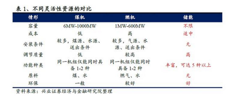 電儲能是最優(yōu)質(zhì)的靈活性資源。電力靈活性資源的供應(yīng)主體較少,傳統(tǒng)主體為煤電、燃機(jī),近年來出現(xiàn)了新的主體——電儲能。相對于前兩種資源,儲能具備優(yōu)異的調(diào)節(jié)性能,靈活的安裝方式、高質(zhì)量的調(diào)節(jié)能力、環(huán)保等多種優(yōu)勢,必將成為未來最主要的靈活性資源。