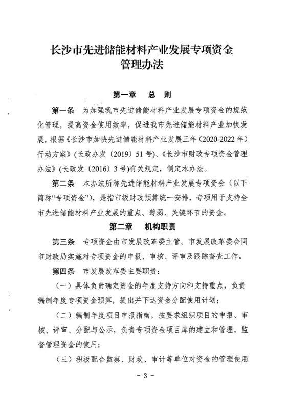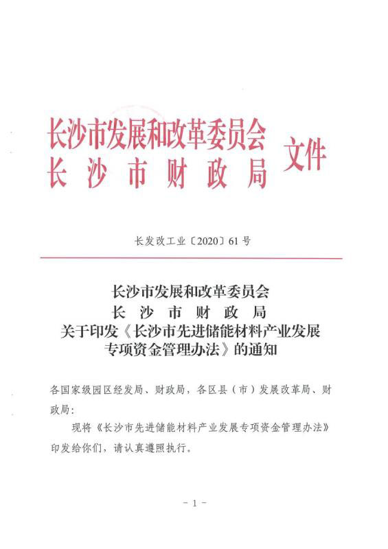 關(guān)于印發(fā)《長沙市先進(jìn)儲(chǔ)能材料產(chǎn)業(yè)發(fā)展專項(xiàng)資金管理辦法》的通知
