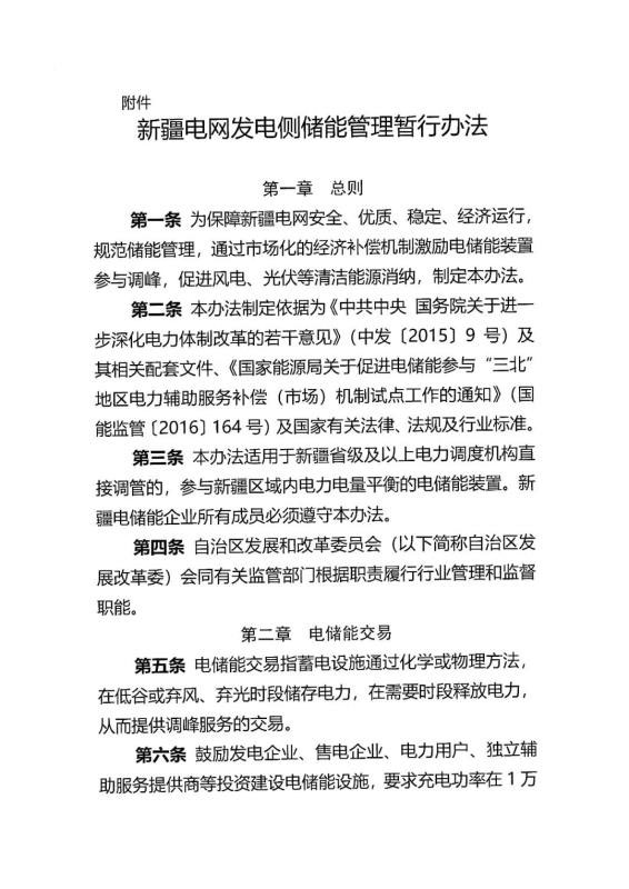 《新疆電網(wǎng)發(fā)電側(cè)儲(chǔ)能管理辦法》意見(jiàn)征集發(fā)布 補(bǔ)償標(biāo)準(zhǔn)0.55元/千瓦時(shí)
