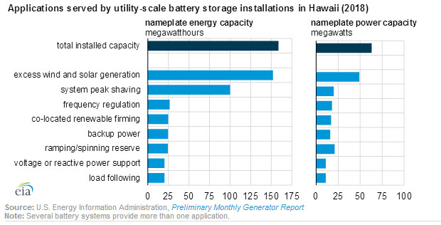 夏威夷州2018年在各種應(yīng)用場合部署的電網(wǎng)規(guī)模電池儲(chǔ)能系統(tǒng)