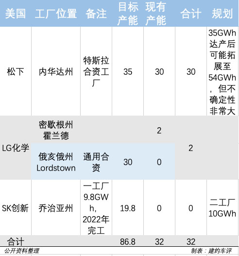 因?yàn)檫@兩家在北美短期之內(nèi)沒(méi)有靠譜的動(dòng)力電池產(chǎn)能,或者說(shuō)現(xiàn)實(shí)產(chǎn)能忽略不計(jì)。