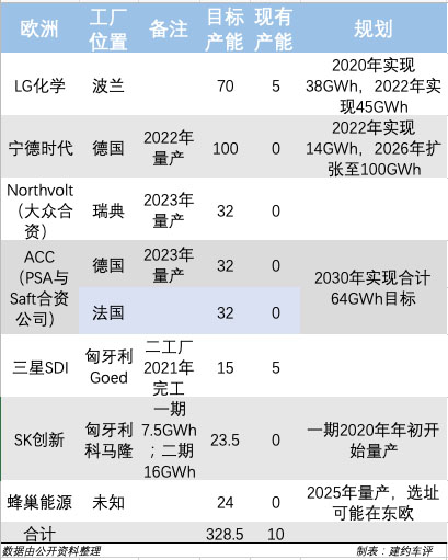 此外,LG化學(xué)在中國(guó)已知的中期產(chǎn)能建設(shè)目標(biāo)為48GWh,歐洲的目標(biāo)為70GWh,美國(guó)的目標(biāo)為32GWh,合計(jì)為150GWh。