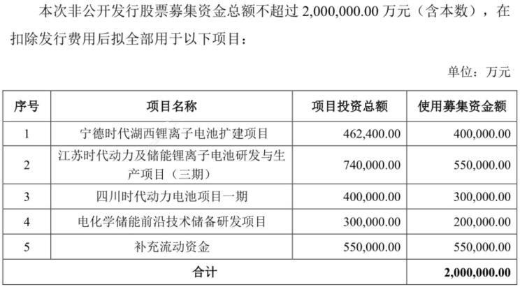 根據寧德時代《非公開發(fā)行股票預案》公告顯示,擬擴建的“寧德時代湖西鋰離子電池項目”將新增鋰離子電池年產能約16GWh,項目投資46.24億元?!敖K時代動力及儲能鋰離子電池研發(fā)與生產項目(三期)”則將新增鋰離子電池年產能約24GWh,項目投資74億元?!八拇〞r代動力電池項目一期”項目投資40億元,建設內容為新增鋰離子電池年產能約12GWh。