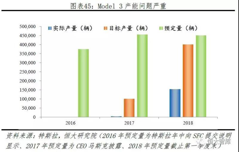 一、產(chǎn)能問題。特斯拉的產(chǎn)能一直備受詬病,由于產(chǎn)能不足而導(dǎo)致的生產(chǎn)能力與產(chǎn)品預(yù)定量不匹配、交付延遲嚴(yán)重等。由于Model 3訂單與實(shí)際產(chǎn)量偏離程度最高,特斯拉2017年年底以來暴露的產(chǎn)能問題愈加嚴(yán)重。2017年第三季度Model 3實(shí)際產(chǎn)量僅260臺,遠(yuǎn)低于1500臺預(yù)期,主要因?yàn)樵缙陔姵爻壒SGigafactory 1還未正式量產(chǎn),人工組裝電池包速度慢。電池量產(chǎn)問題得到解決后,Model3產(chǎn)能問題依然未得到解決,主要因?yàn)楫a(chǎn)線過于高度自動化。針對生產(chǎn)組裝的GA3產(chǎn)線自動化程度高達(dá)90%以上,生產(chǎn)一臺汽車匹配數(shù)百條機(jī)器設(shè)備,產(chǎn)線過于密集,機(jī)器設(shè)備過多導(dǎo)致作業(yè)時間沖突、效率和靈活性下降,激增的維護(hù)成本抵消掉自動化帶來的成本優(yōu)勢。因此,特斯拉曾于2018年2月、4月停產(chǎn)維護(hù)GA3產(chǎn)線,降低自動化程度并加入更多人手,此外還開設(shè)帳篷產(chǎn)線GA4增加生產(chǎn)速度。2018年6月Model 3達(dá)到目標(biāo)周產(chǎn)能5000輛,目前周產(chǎn)量約7000輛。即便如此,特斯拉按時完成交付任務(wù)依然艱難,按照2017年年底Model 3約45.5萬訂單、2018年實(shí)際交付14.7萬計算,不考慮新增訂單,剩余訂單還需1年左右時間完成。