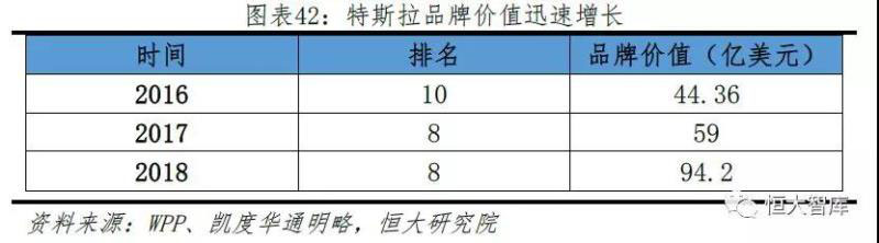 特斯拉具有非常高的品牌價值,這很大程度上得益于CEO馬斯克的個人魅力和獨(dú)特光環(huán)。馬斯克初期打造現(xiàn)實(shí)版鋼鐵俠形象,個人影響力高漲,“網(wǎng)紅效應(yīng)”使得特斯拉自帶流量和媒體曝光度。例如在Model 3發(fā)布會后利用社交網(wǎng)絡(luò)上各路媒體及自媒體進(jìn)行話題討論,首周預(yù)定量便超過30萬,傳播效果遠(yuǎn)超傳統(tǒng)廣告渠道。根據(jù)全球品牌評估平臺BrandZ數(shù)據(jù),特斯拉自2016年起位列全球汽車品牌前十,品牌價值也從2016年的44億美元漲至2018年的94億美元,甚至超過保時捷等老牌豪車品牌。